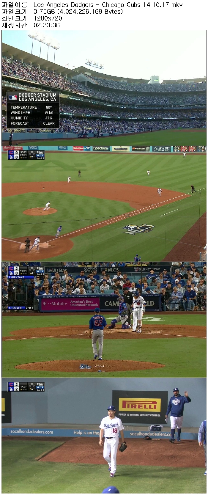 [MLB]2017 NLCS 1차전 LA다저스 vs 시카고 171015 [영어해설,고화질,720P] 다시보기 토렌트