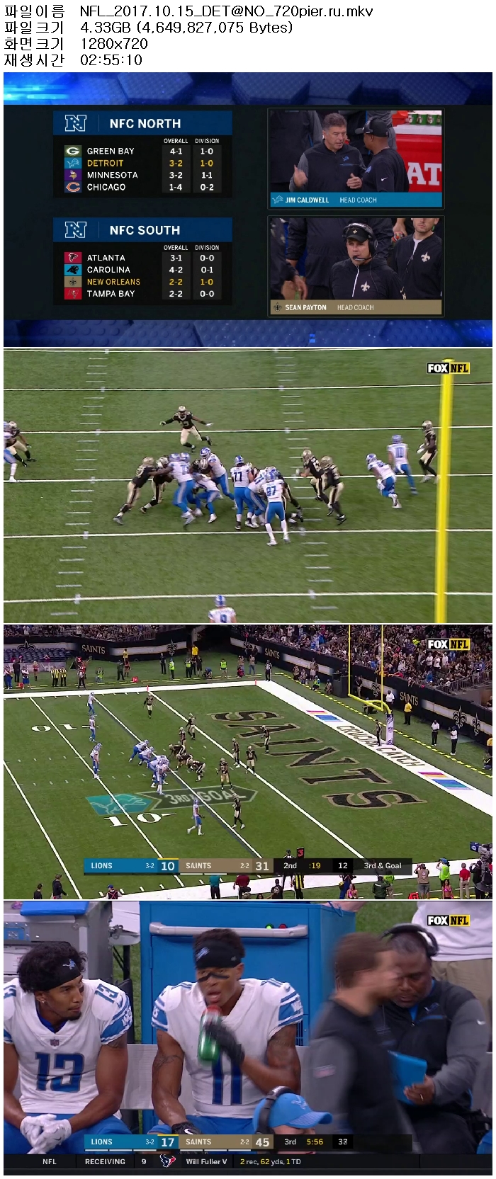 [NFL]2017미식축구 디트로이트 vs 뉴올리언즈 171016 [영어해설,고화질,720P] 다시보기 토렌트