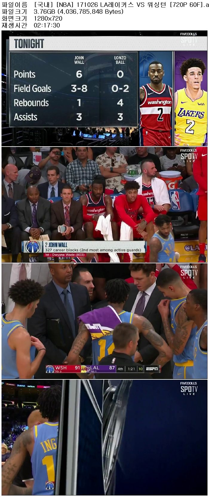 [국내] [NBA] 171026 LA레이커스 VS 워싱턴 [720P 60F] 다시보기 토렌트