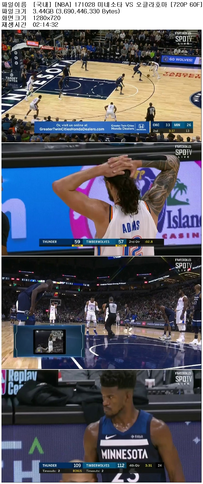 [국내] [NBA] 171028 미네소타 VS 오클라호마 [720P 60F] 다시보기 토렌트