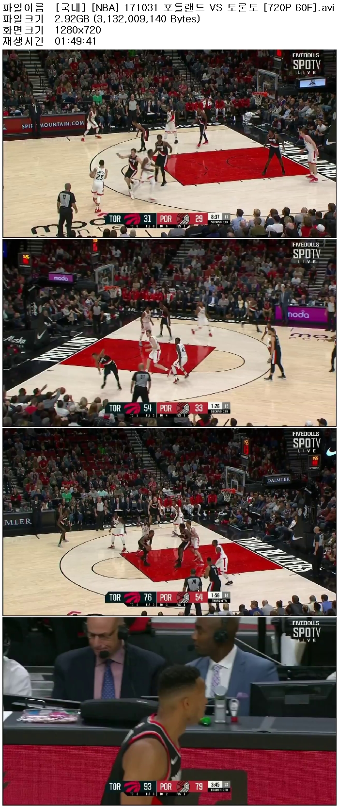 [국내] [NBA] 171031 포틀랜드 VS 토론토 [720P 60F] 다시보기 토렌트