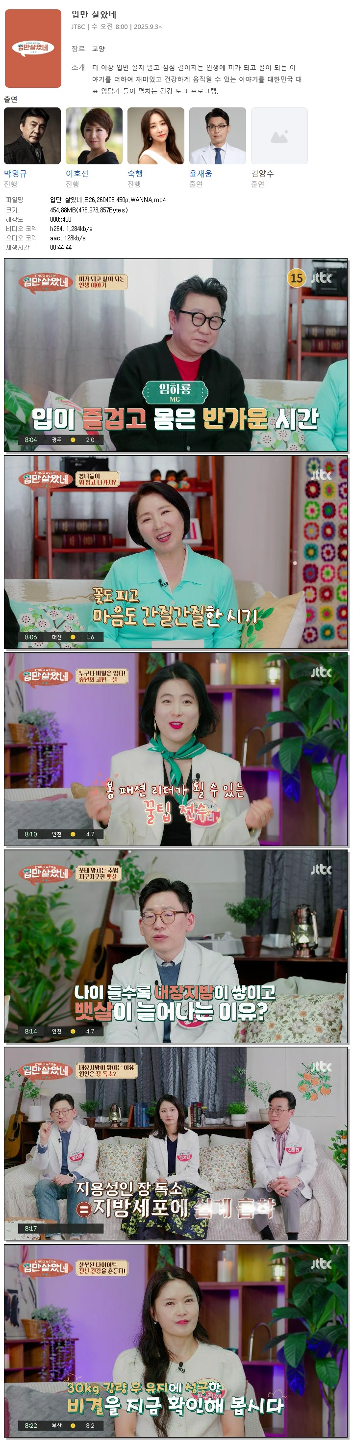 | [JTBC] 입만 살았네.E26.260408.450p.WANNA[박영규, 이호선].mp4 | 454.9 M | 00:44:44 | 800x450 |