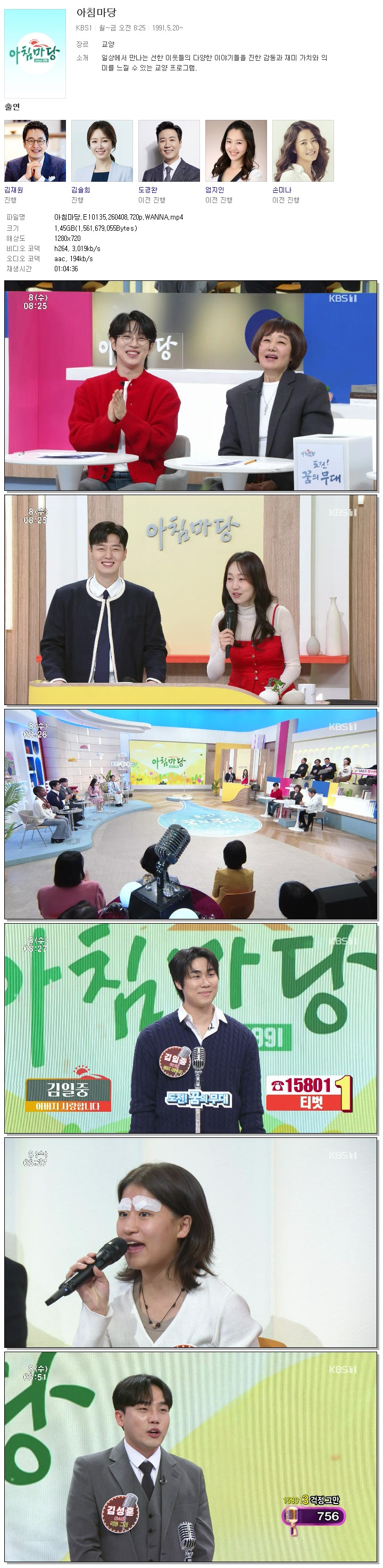 [KBS1] 아침마당.E10135.260408.720p.WANNA[김재원, 엄지인].mp4 1.5 G 01:04:36 1280x720