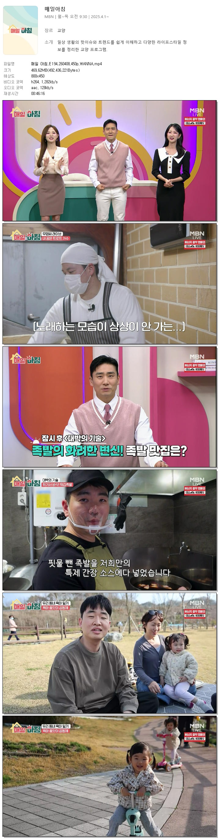 [MBN] 매일 아침.E194.260408.450p.WANNA[한혜원, 이정수] 다시보기 토렌트