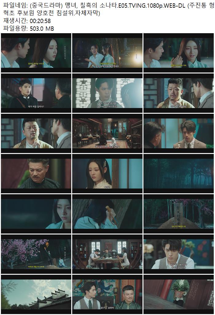 | (중국드라마) 맹녀, 칠흑의 소나타.E05.TVING.1080p.WEB-DL (주진통 형혁초 후보원 양호천 침설위.자체자막).mkv | 503 M | - | 1920x1080 |