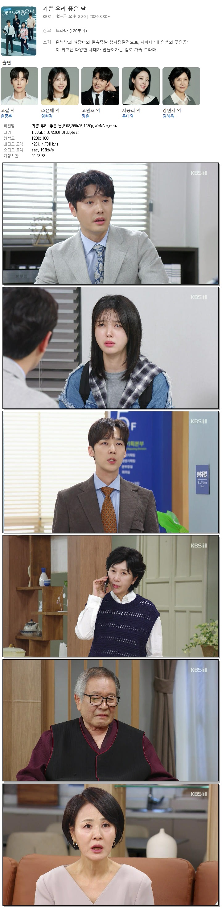 [KBS1] 기쁜 우리 좋은 날.E08.260408.1080p.WANNA[윤종훈, 엄현경] 다시보기 토렌트