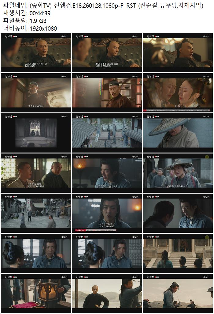 | (중화TV) 천행건.E18.260128.1080p-F1RST (진준걸 류우녕.자체자막).mp4 | 1.9 G | - | 1920x1080 |
