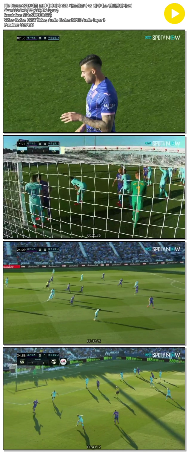 | 1718시즌 프리메라리가 12R 바르셀로나 vs 레가네스 전반전경기.avi | 830.9 M | 00:54:00 | 954x538 |