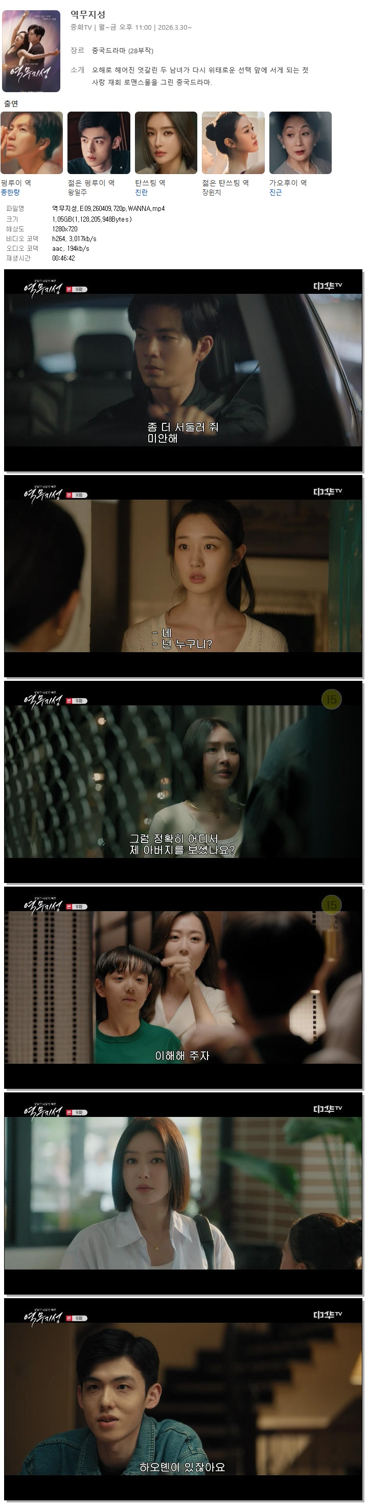| [중화TV] 역무지성.E09.260409.720p.WANNA[종한량, 친란].mp4 | 1.1 G | 00:46:42 | 1280x720 |