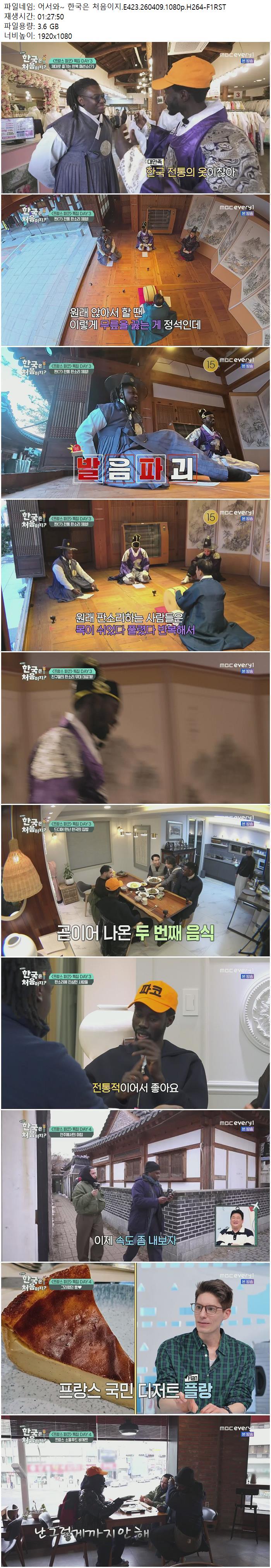 어서와~ 한국은 처음이지.E423.260409.1080p.H264-F1RST 다시보기 토렌트