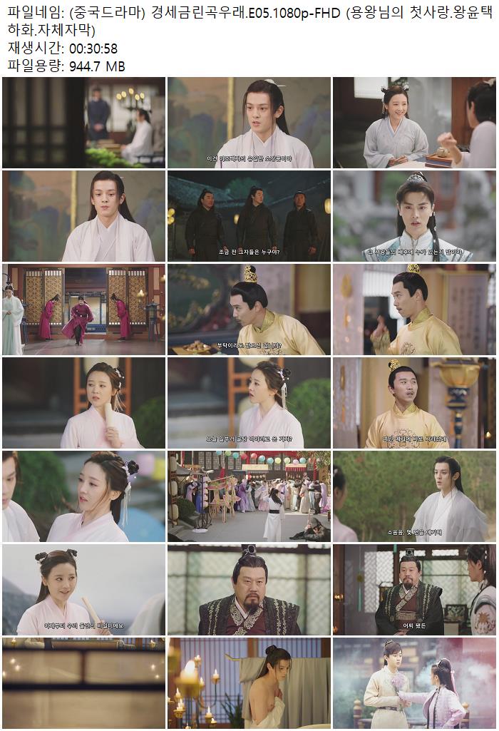 | (중국드라마) 경세금린곡우래.E05.1080p-FHD (용왕님의 첫사랑.왕윤택 하화.자체자막).mp4 | 944.7 M | - | 1920x1080 |