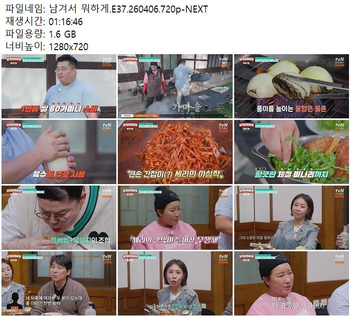 | 남겨서 뭐하게.E37.260406.720p-NEXT.mp4 | 1.6 G | - | 1280x720 |