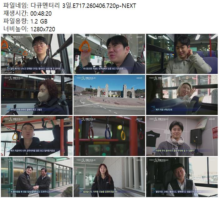 | 다큐멘터리 3일.E717.260406.720p-NEXT.mp4 | 1.2 G | - | 1280x720 |