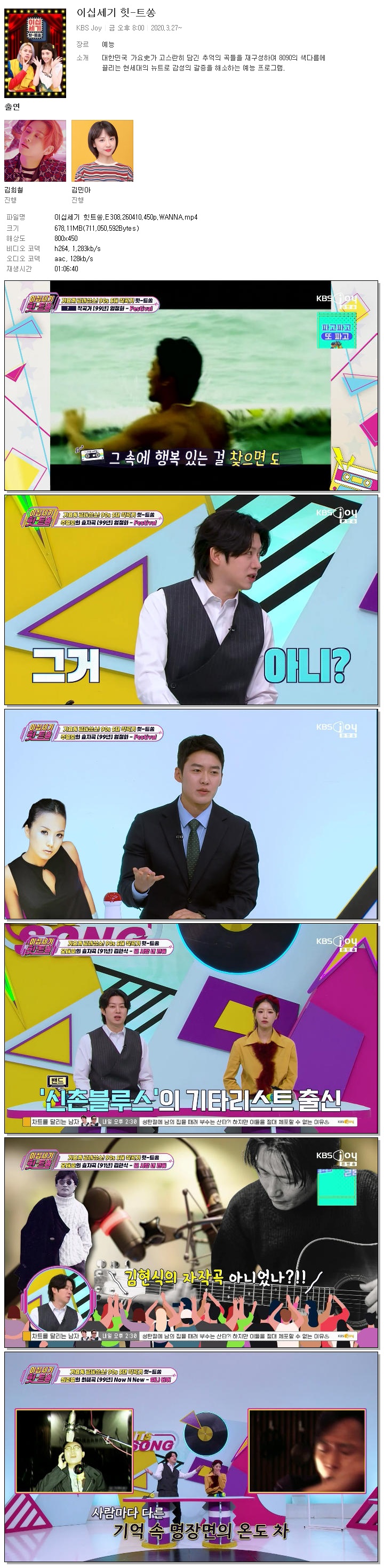 | [KBS JOY] 이십세기 힛트쏭.E308.260410.450p.WANNA[김희철, 미주].mp4 | 678.1 M | 01:06:40 | 800x450 |