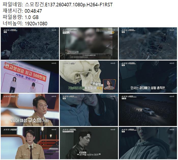 | 스모킹건.E137.260407.1080p.H264-F1RST.mp4 | 1 G | - | 1920x1080 |