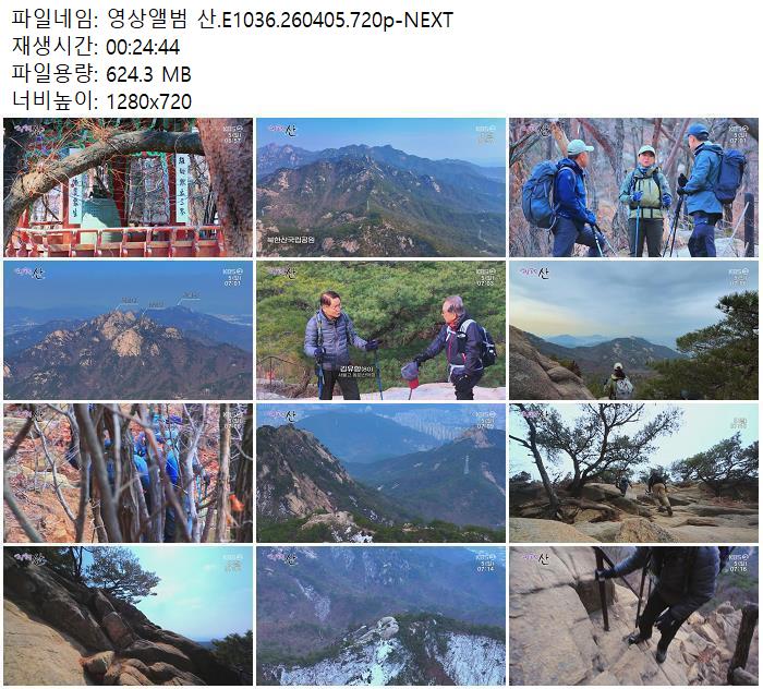 | 영상앨범 산.E1036.260405.720p-NEXT.mp4 | 624.3 M | - | 1280x720 |