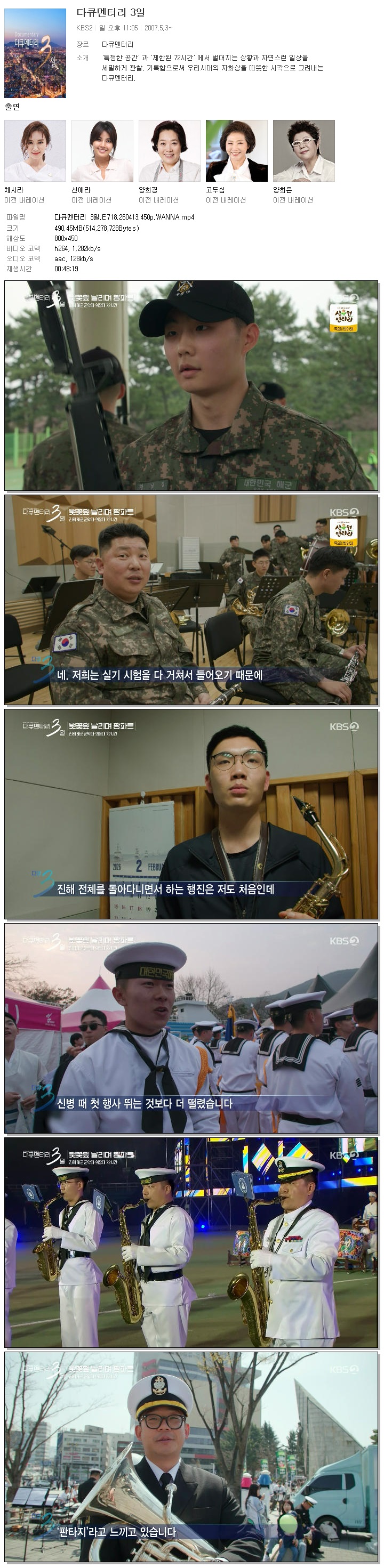 | [KBS2] 다큐멘터리 3일.E718.260413.450p.WANNA.mp4 | 490.5 M | 00:48:19 | 800x450 |