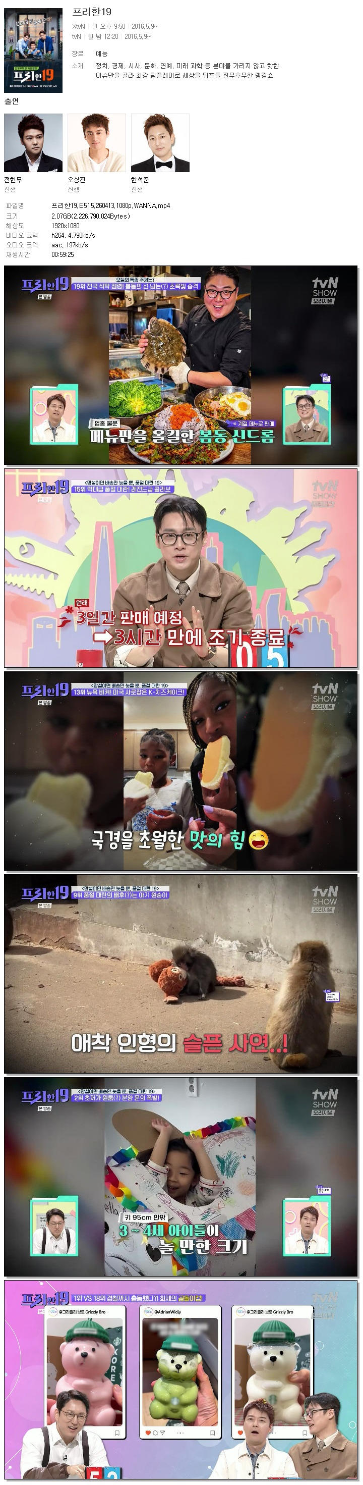 | [TVNSHOW] 프리한19.E515.260413.1080p.WANNA[전현무, 오상진].mp4 | 2.1 G | 00:59:25 | 1920x1080 |