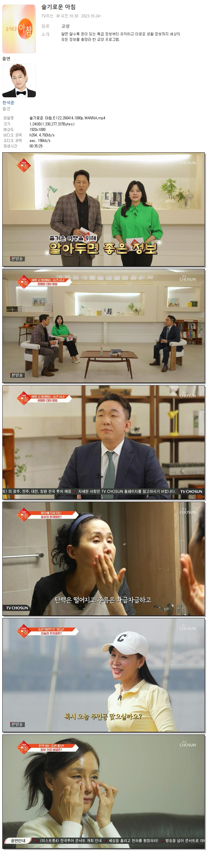 | [TV조선] 슬기로운 아침.E122.260414.1080p.WANNA[한석준, 이진희].mp4 | 1.2 G | 00:35:29 | 1920x1080 |