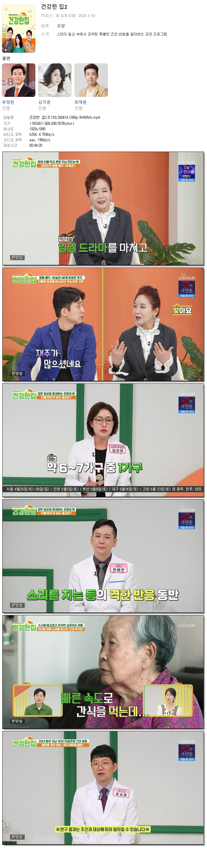 [TV조선] 건강한 집2.E100.260414.1080p.WANNA[유정현, 김지영] 다시보기 토렌트