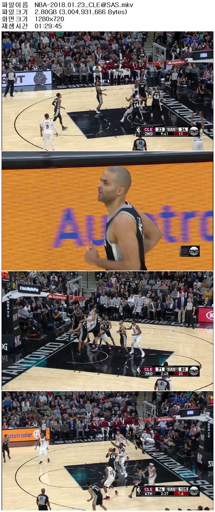[NBA]1718시즌 샌안토니오 vs 클리블랜드 180124 [고화질,720P30fps] 다시보기 토렌트