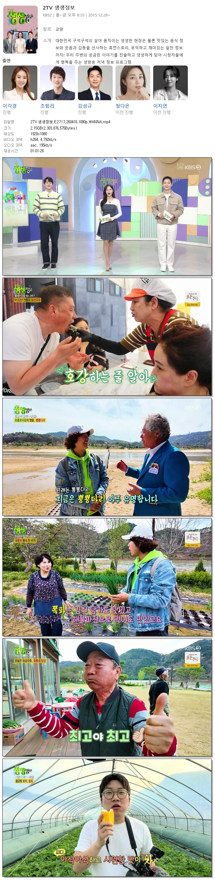 | [KBS2] 2TV 생생정보.E2717.260416.1080p.WANNA[이각경, 조항리].mp4 | 2.1 G | 01:01:28 | 1920x1080 |