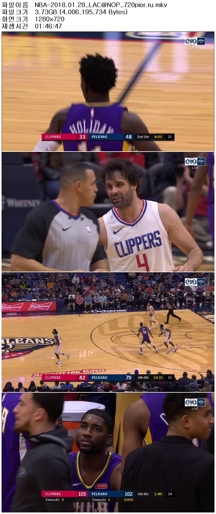 [NBA]1718시즌 뉴올리언즈 vs LA클리퍼스 180129 [초고화질,720P60fps] 다시보기 토렌트