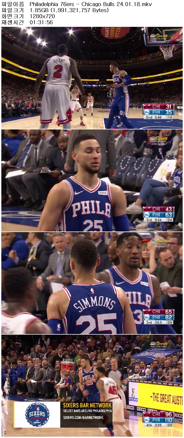 [NBA]1718시즌 필라델피아 vs 시카고 180125 [고화질,720P30fps] 다시보기 토렌트