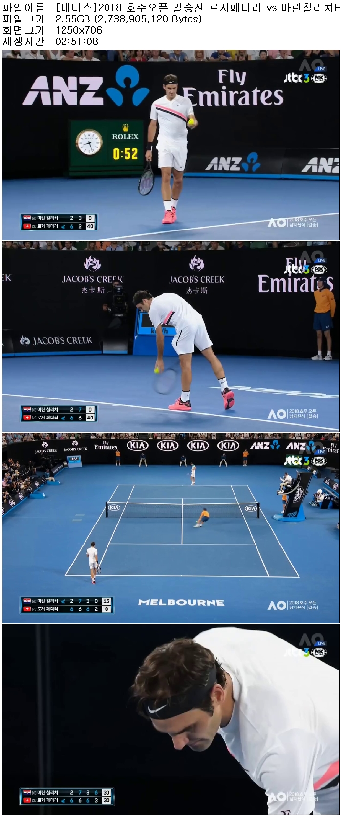 | [테니스]2018 호주오픈 결승전 로저페더러 vs 마린칠리치E02.avi | 353 M | 00:22:53 | 1250x700 |