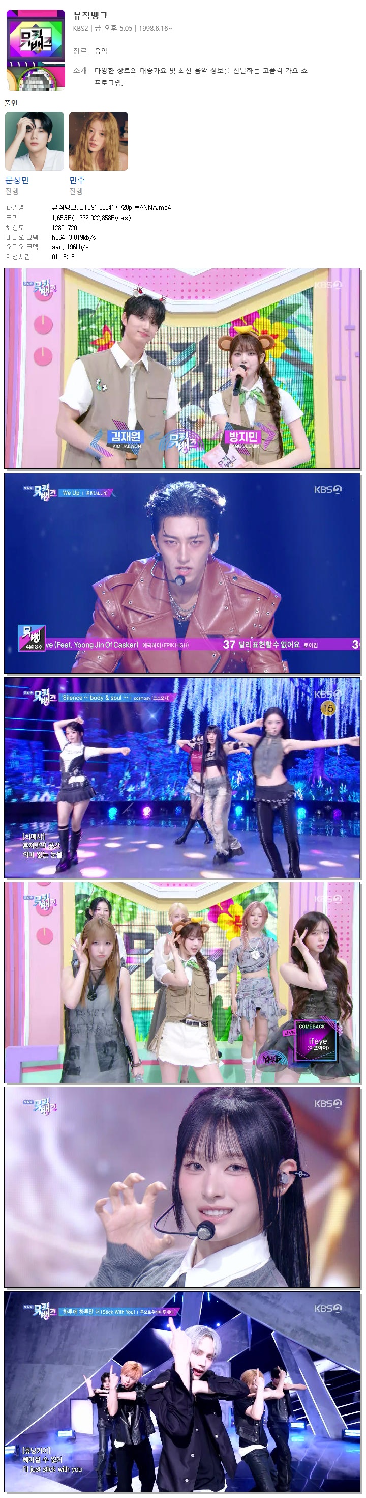 [KBS2] 뮤직뱅크.E1291.260417.720p.WANNA[모디세이, 이프아이] 다시보기 토렌트