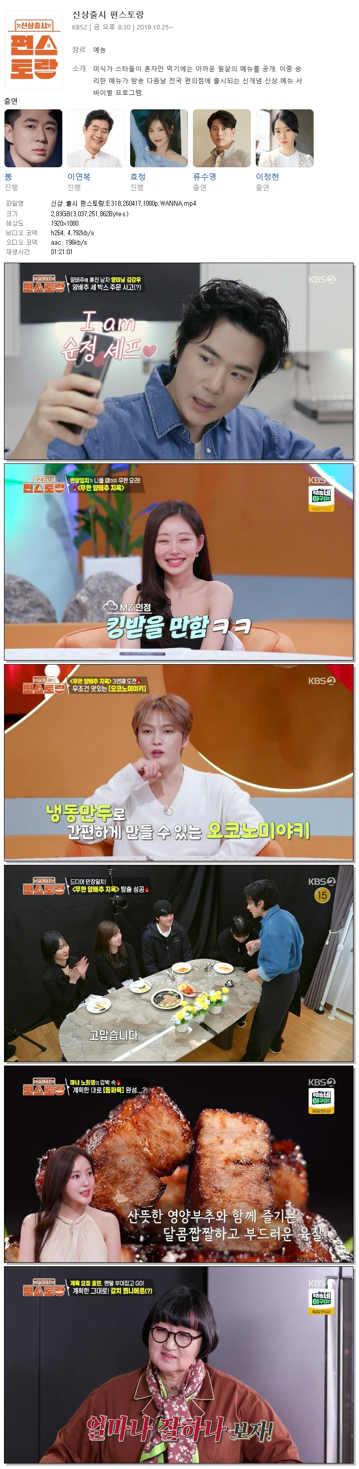 | [KBS2] 신상 출시 편스토랑.E318.260417.1080p.WANNA[효민, 김강우].mp4 | 2.8 G | 01:21:01 | 1920x1080 |