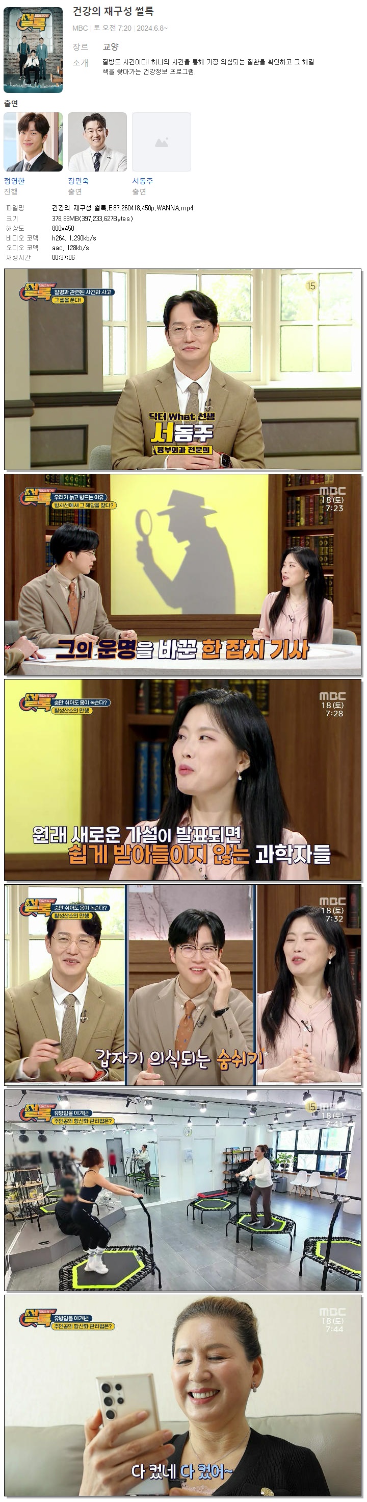 | [MBC] 건강의 재구성 썰록.E87.260418.450p.WANNA[정영한].mp4 | 378.8 M | 00:37:06 | 800x450 |