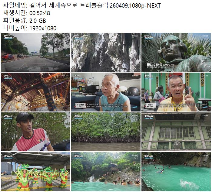 | 걸어서 세계속으로 트래블홀릭.260409.1080p-NEXT.mp4 | 2 G | - | 1920x1080 |