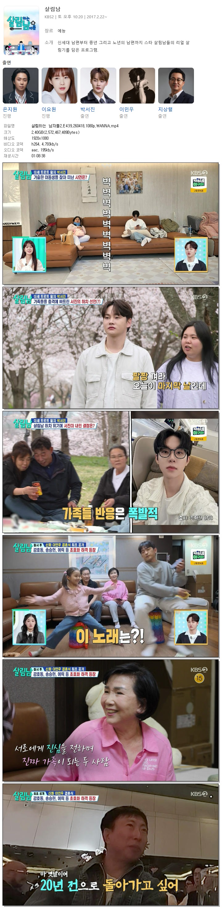 | [KBS2] 살림하는 남자들2.E439.260418.1080p.WANNA[박서진, 이민우].mp4 | 2.4 G | 01:08:38 | 1920x1080 |