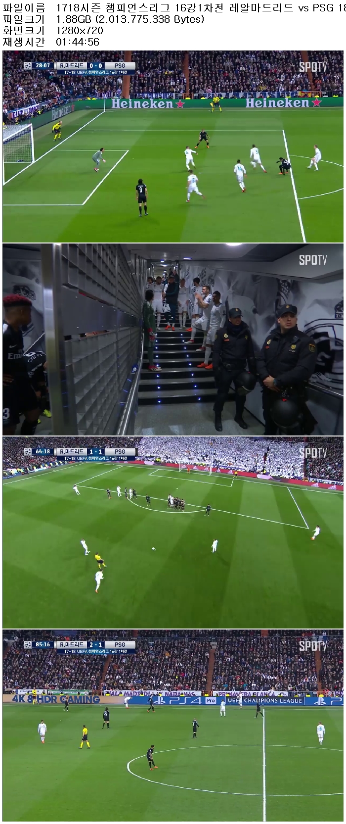1718시즌 챔피언스리그 16강1차전 레알마드리드 vs PSG 180215 [국내방송,고화질,720P].mp4 1.9 G 01:44:56 1280x720