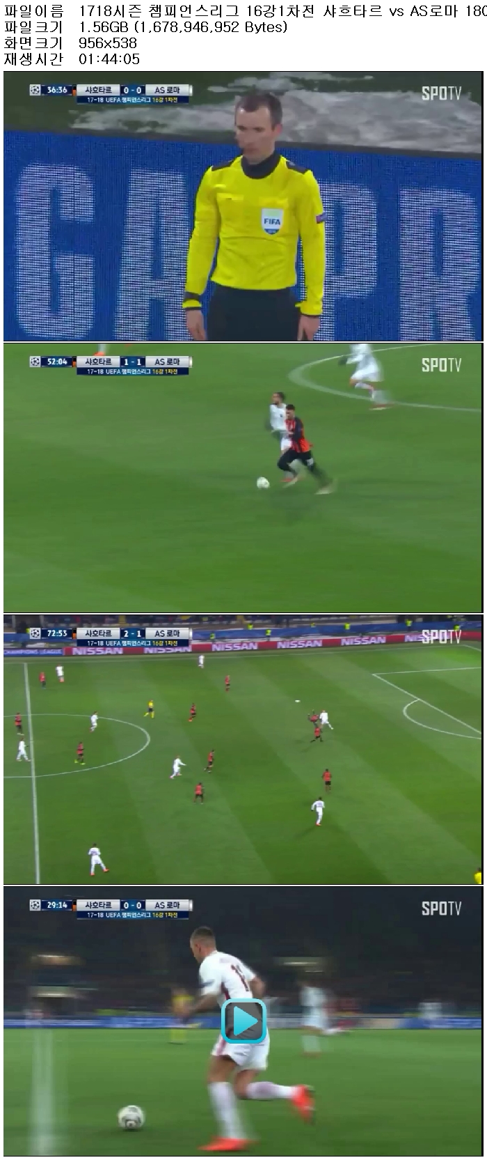 | 1718시즌 챔피언스리그 16강1차전 샤흐타르 vs AS로마 180222 [국내방송].avi | 1.6 G | 01:44:05 | 956x538 |