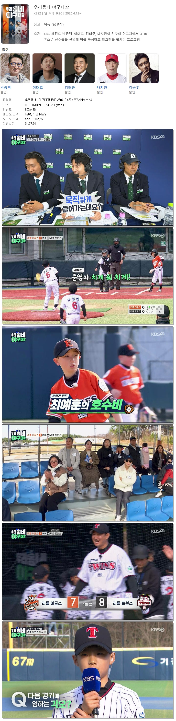 [KBS2] 우리동네 야구대장.E02.260419.450p.WANNA[박용택, 이대호] 다시보기 토렌트