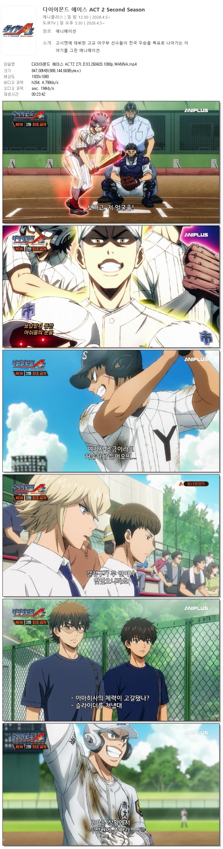 다이아몬드 에이스 ACT2 2기.E03.260420.1080p.WANNA.mp4 847 M 00:23:42 1920x1080