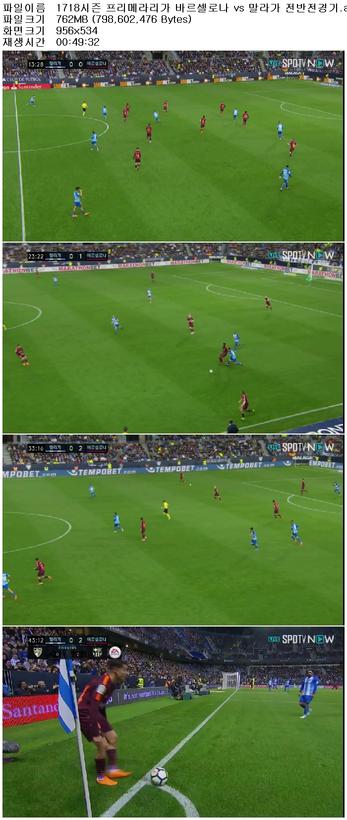 | 1718시즌 프리메라리가 바르셀로나 vs 말라가 후반전경기.avi | 797.9 M | 00:53:07 | 956x534 |