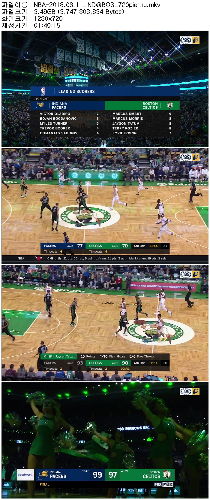 [NBA]1718시즌 보스턴 vs 인디애나 180312 [초고화질,720P60fps] 다시보기 토렌트