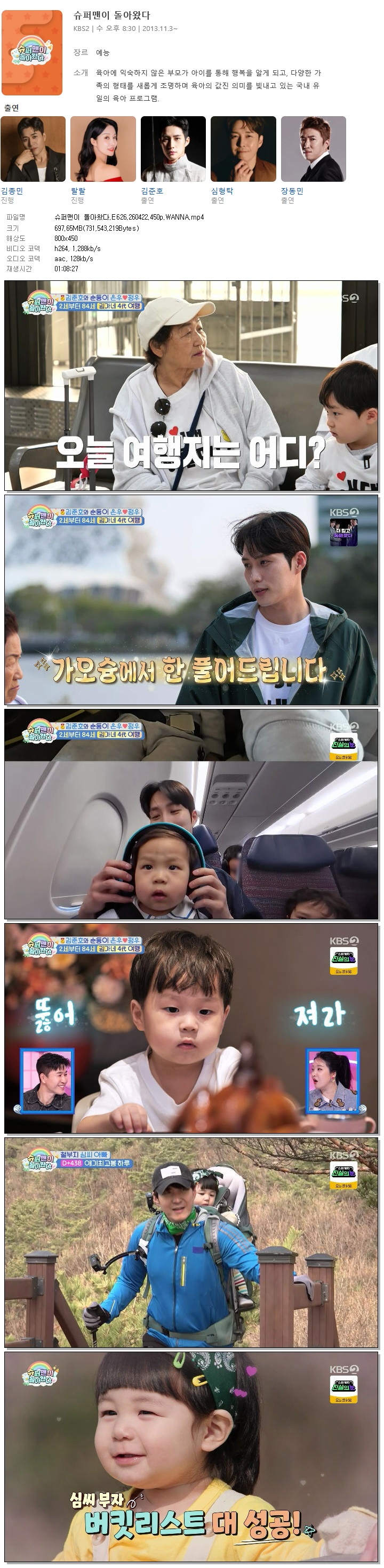 | [KBS2] 슈퍼맨이 돌아왔다.E626.260422.450p.WANNA[심형탁].mp4 | 697.7 M | 01:08:27 | 800x450 |