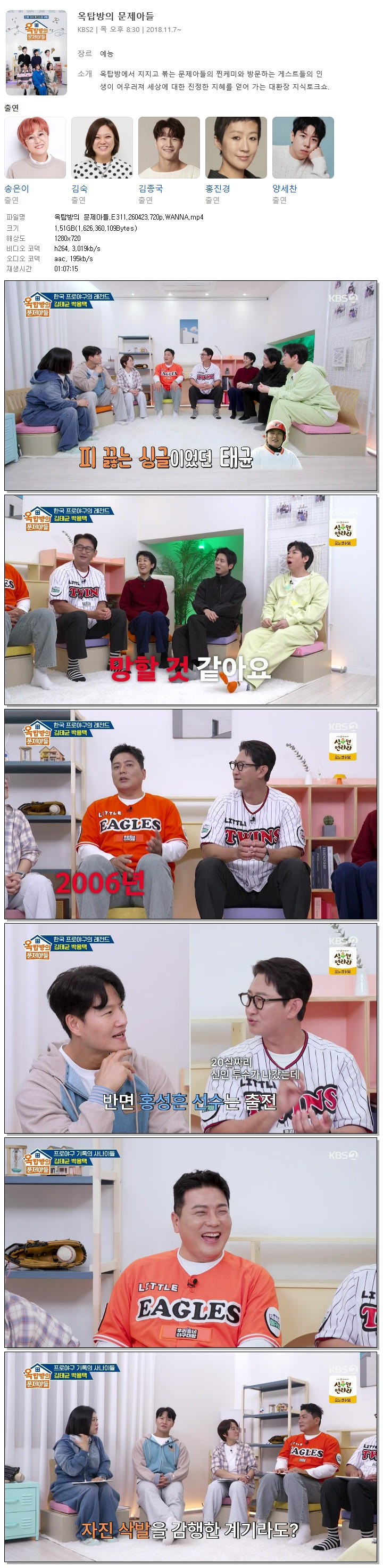 [KBS2] 옥탑방의 문제아들.E311.260423.720p.WANNA[박용택, 김태균] 다시보기 토렌트