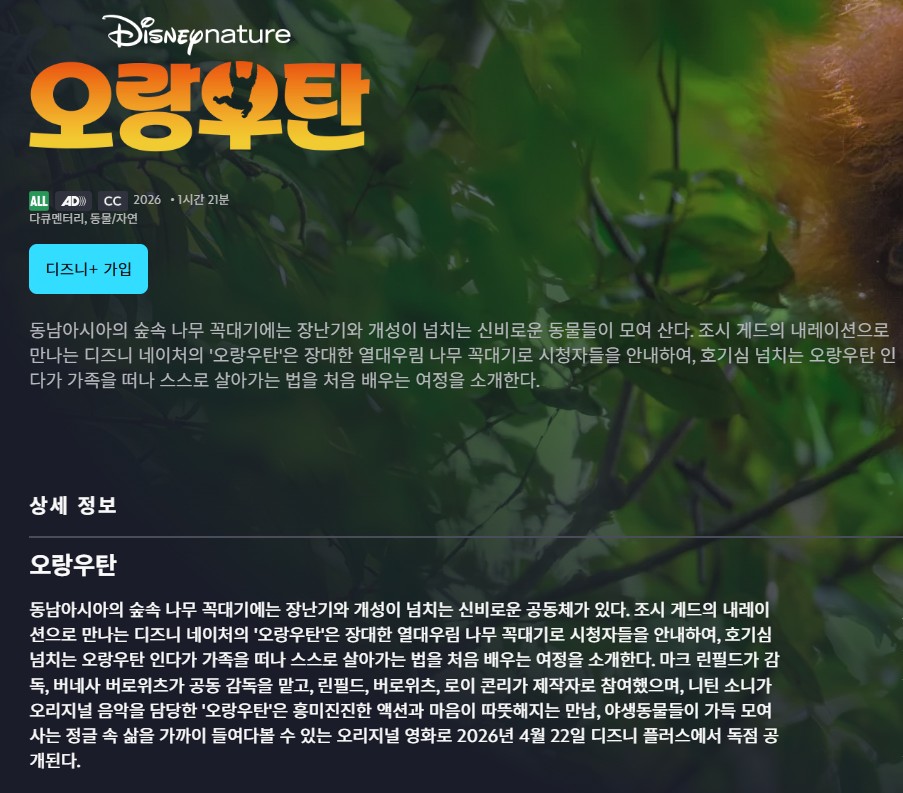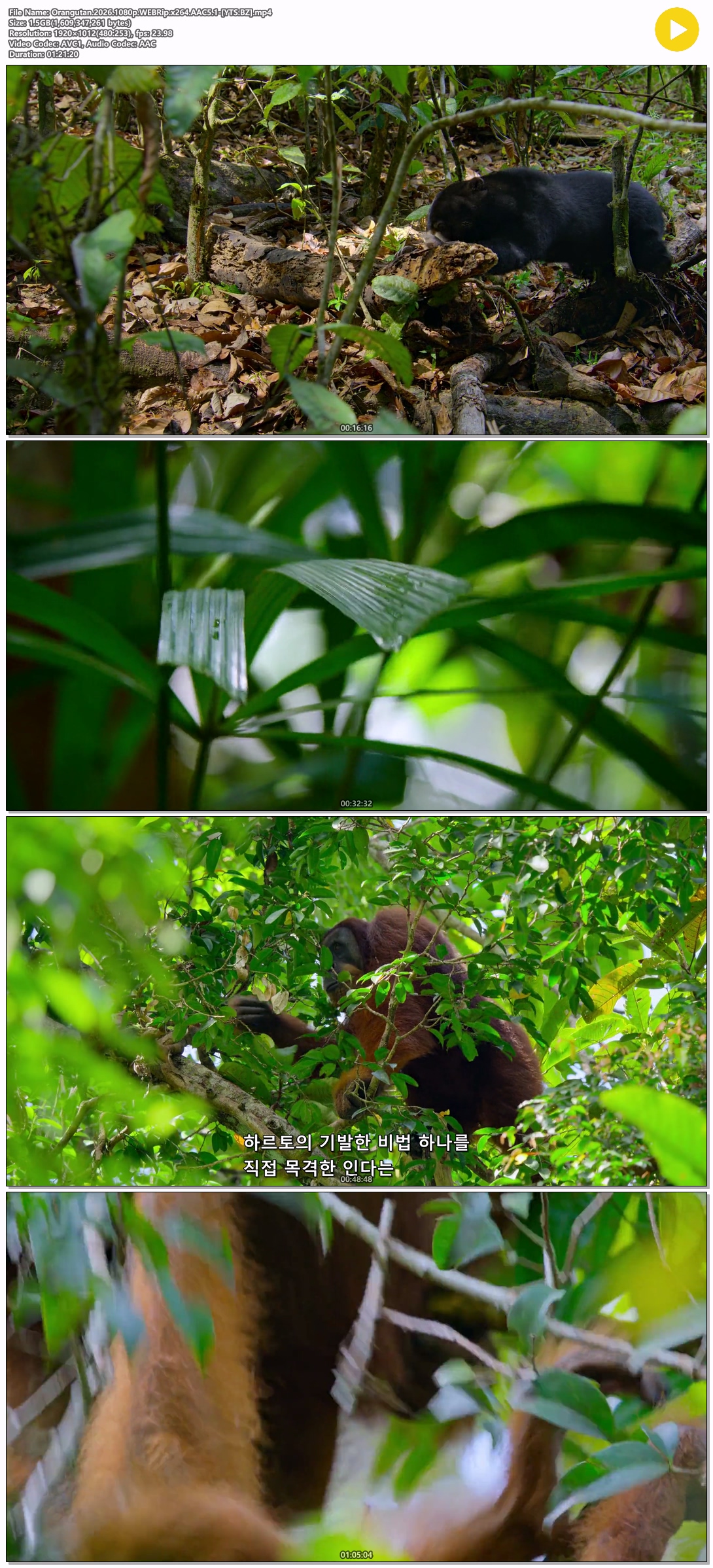 [다큐] 오랑우탄.Orangutan.2026.1080p.한글자막 다시보기 토렌트