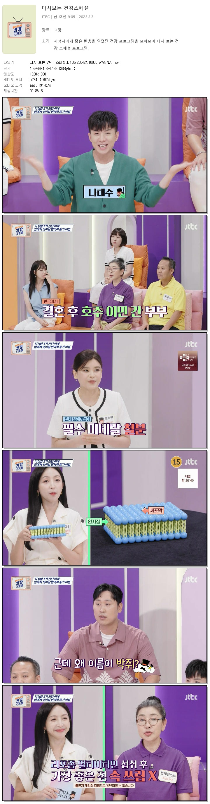 | [JTBC] 다시 보는 건강 스페셜.E185.260424.1080p.WANNA.mp4 | 1.6 G | 00:45:13 | 1920x1080 |
