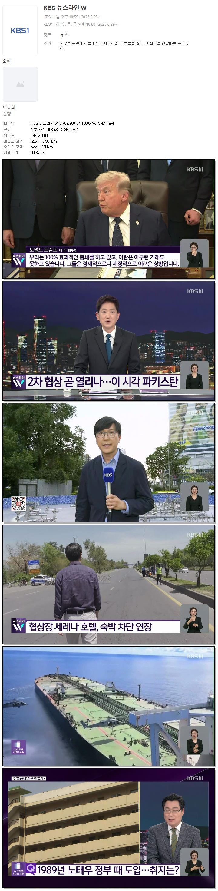 | [KBS1] KBS 뉴스라인W.E702.260424.1080p.WANNA.mp4 | 1.3 G | 00:37:28 | 1920x1080 |