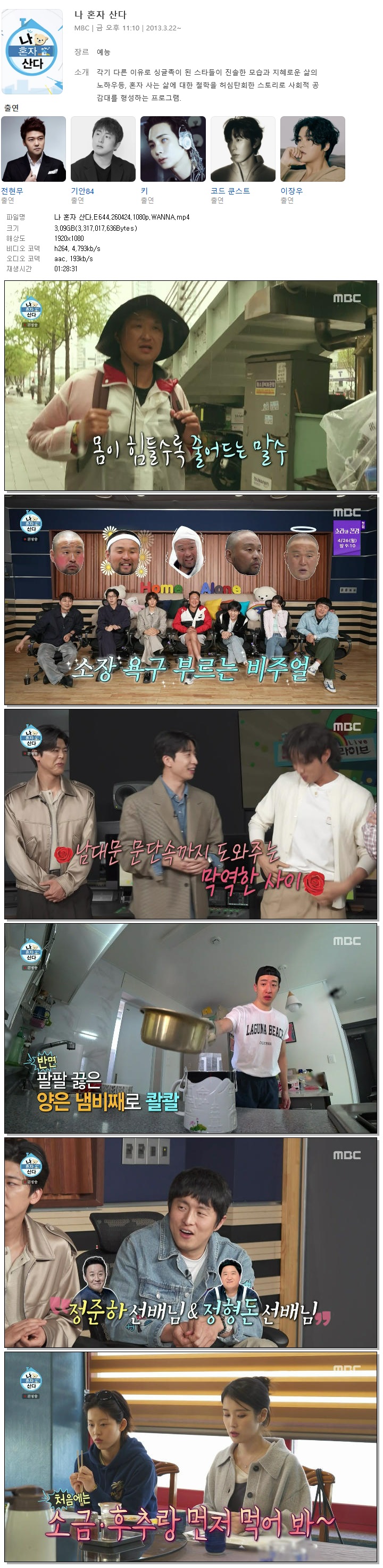 | [MBC] 나 혼자 산다.E644.260424.1080p.WANNA[유수빈, 구성환].mp4 | 3.1 G | 01:28:31 | 1920x1080 |