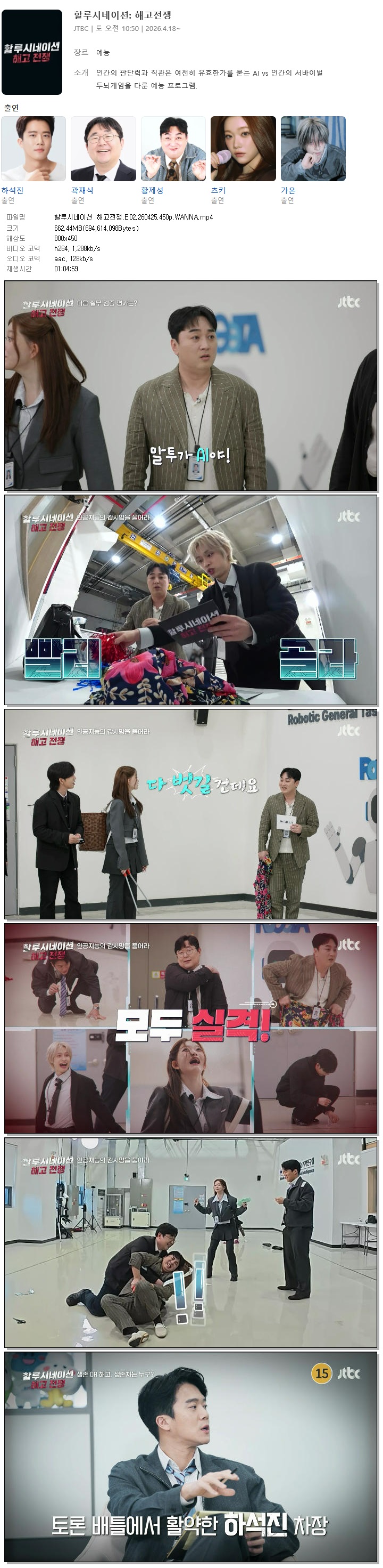 [JTBC] 할루시네이션 해고전쟁.E02.260425.450p.WANNA[하석진, 황제성] 다시보기 토렌트