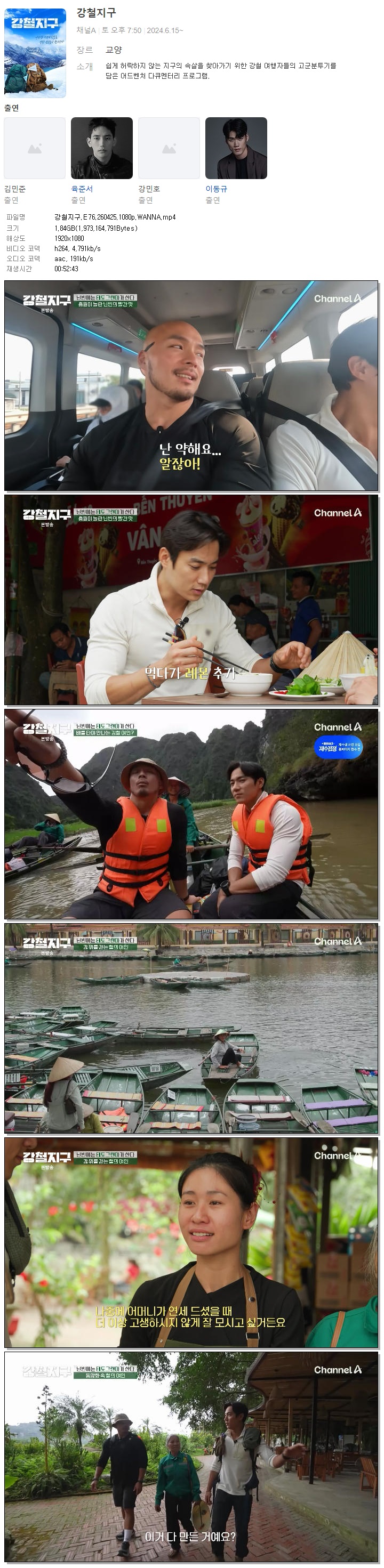 | [채널A] 강철지구.E76.260425.1080p.WANNA.mp4 | 1.8 G | 00:52:43 | 1920x1080 |