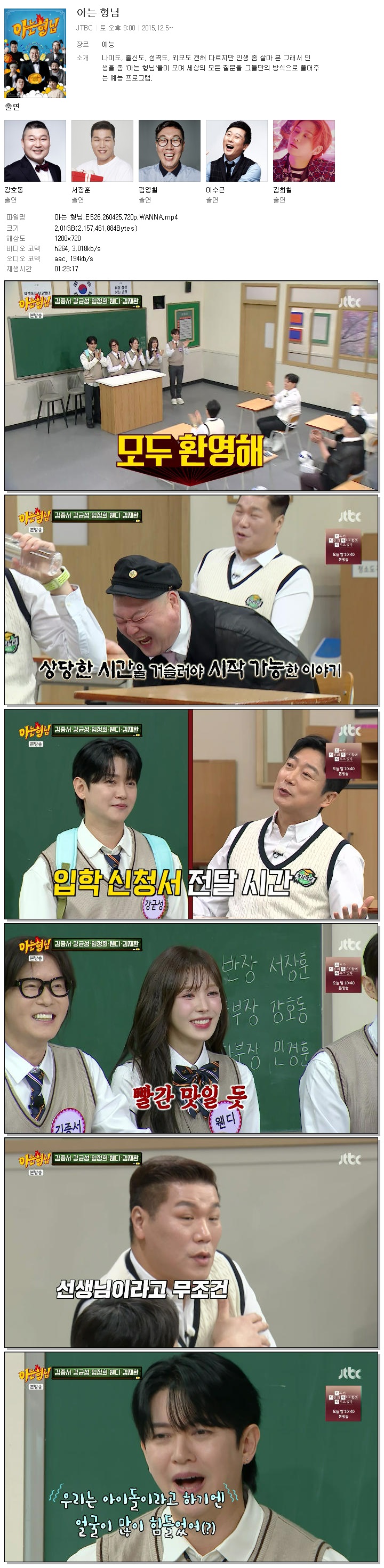 | [JTBC] 아는 형님.E526.260425.720p.WANNA[김종서, 강균성].mp4 | 2 G | 01:29:17 | 1280x720 |