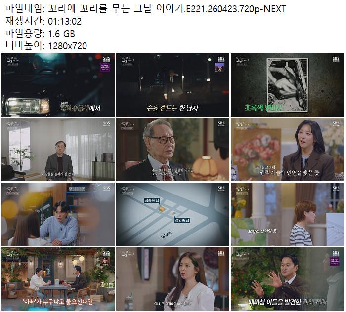 | 꼬리에 꼬리를 무는 그날 이야기.E221.260423.720p-NEXT.mp4 | 1.6 G | - | 1280x720 |